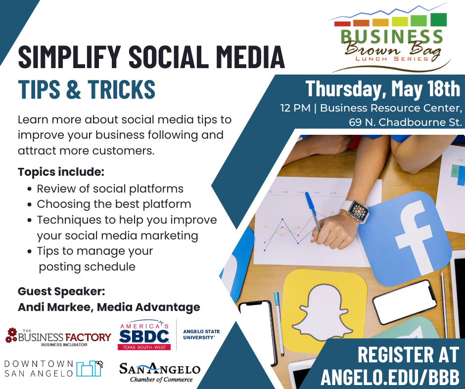 Learn more about social media tips to improve your business following and attract more customers with guest speaker Andi Markee from Media Advantage.