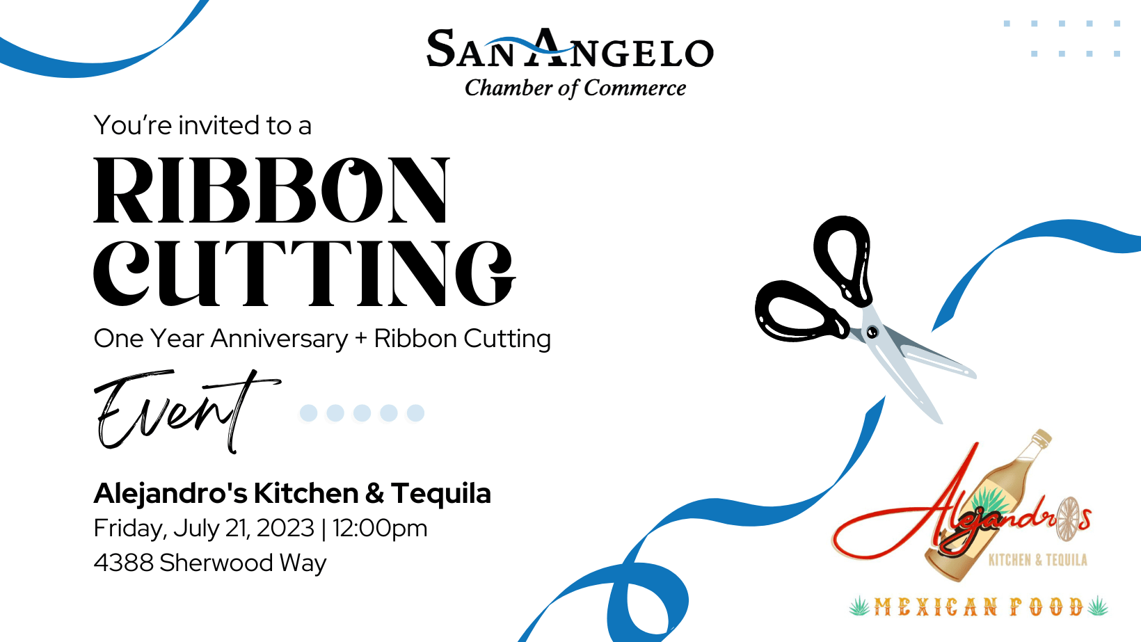 Alejandro's Kitchen & Tequila will be hosting their One Year Anniversary and official Grand Opening with Ribbon Cutting ceremony on Friday, July 21st at 12pm!