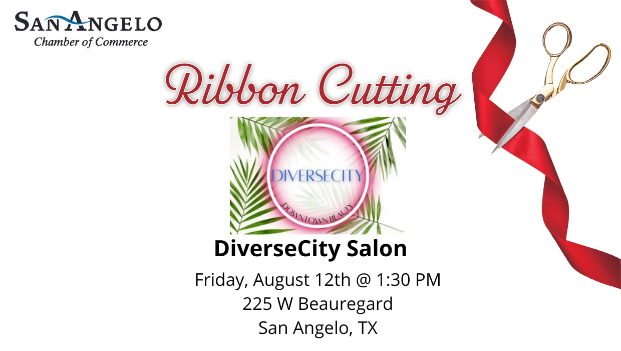 Join the San Angelo Chamber of Commerce on Friday August 12th 4th at 1:30 pm to celebrate the grand opening or DiverseCity Salon. Owner, Cyd Rivero has been in the beauty industry for 10 years and is second generation cosmetologist, following gin her mother’s footsteps. She recently opened her first shop located at 225 W Beauregard. The salon is called DiverseCity. The salon is staffed with 6 professionals offering services ranging from color, extensions, waxing, lashes, nails, men’s cuts, and styling/ makeup for event etc. Refreshments will be provided for the ribbon cutting ceremony ,then on Sunday August 14th, the salon in hosting a “Back to School” event with free hair cuts, vendors and bounce houses!