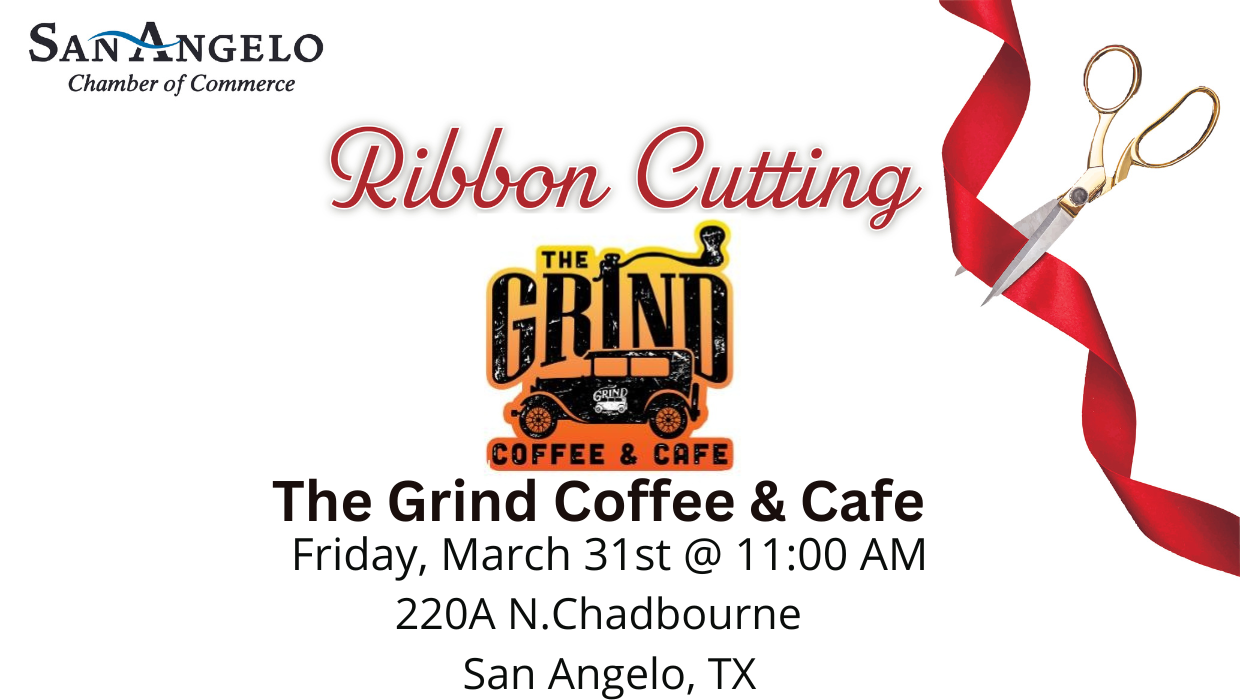Please join the San Angelo Chamber of Commerce for a ribbon cutting to celebrate a change in ownership for The Grind Coffee & Café. The location was bought out and re-branded by Jen and Jansen Hale. Those in attendance can enjoy free coffee during the event and all menu items all day are buy one get one free. The Grind Coffee & Café offers a wide variety menu of coffee, teas, smoothies, as well as lunch and breakfast items.