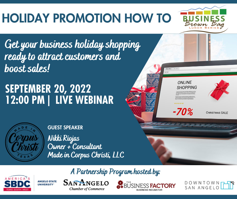 Is your business holiday-ready?! If not, join us for this one-hour session to harness the power of the holidays to increase exposure and sales–even during the Covid era. We’ll discuss creative, socially distant, and safe ways to reach your customers, especially during a time when “business as usual” no longer applies. We’ll also explore ideas to help product and service-based businesses selling in both online and in-person environments.